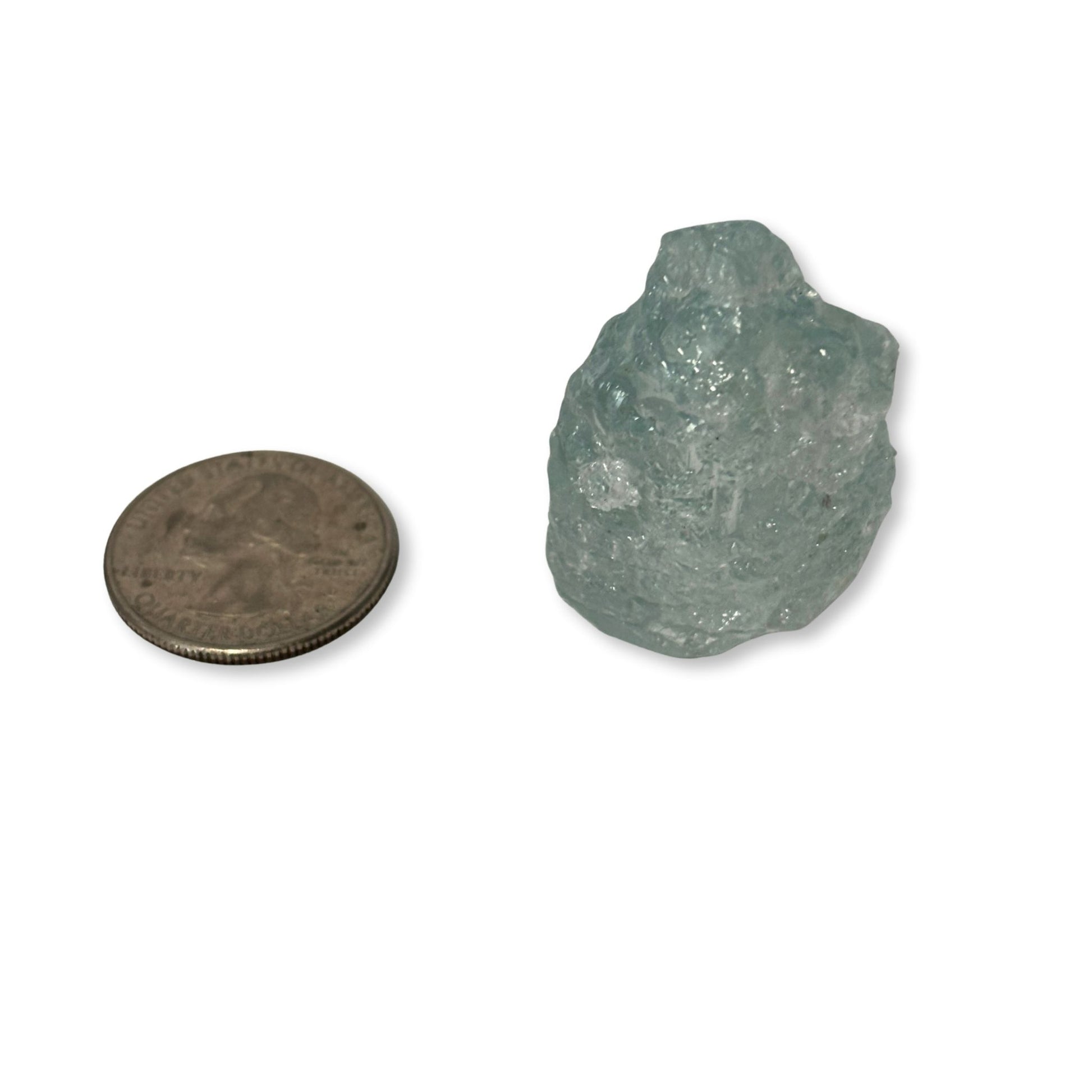 This blue topaz is etched and has a cool ice blue coloring.