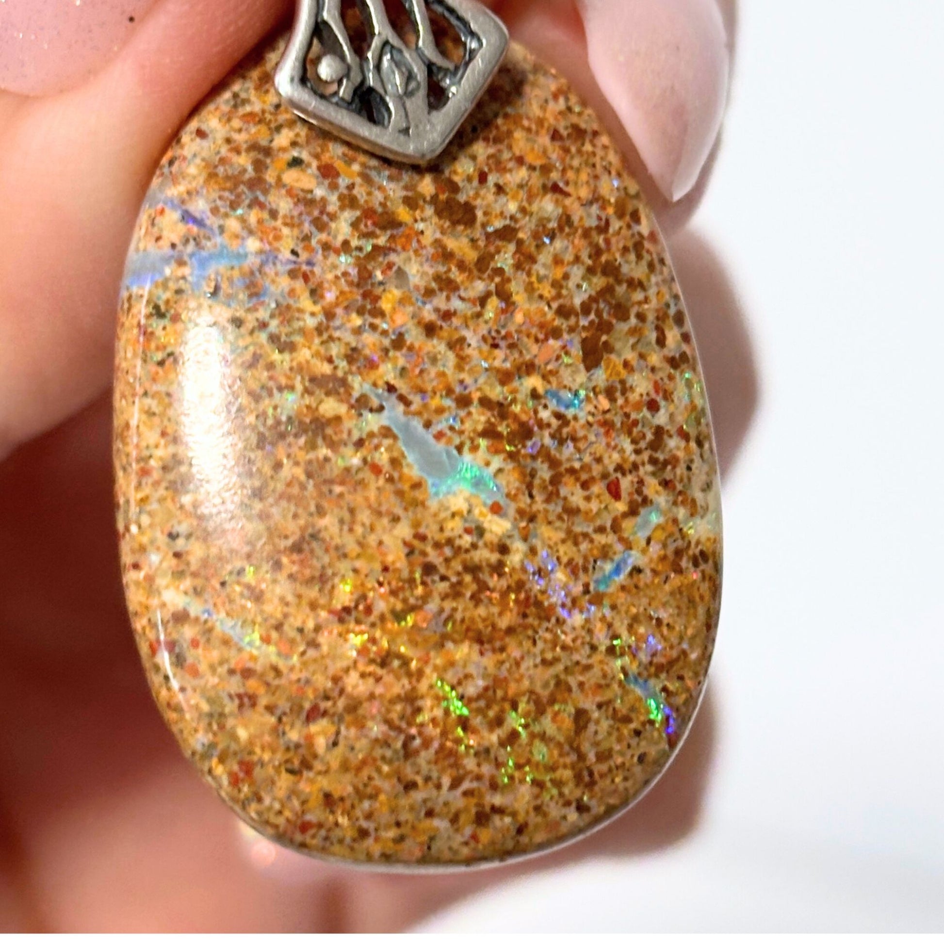Australian Boulder Opal Sterling Silver Pendant Necklace #1
