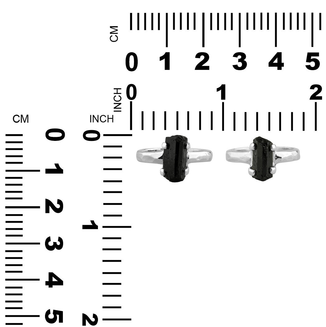 - Natural Black Tourmaline crystal Ring, handcrafted in Fine Sterling Silver. This attractive Ring features a hammered Sterling Silver shank, approximately 0.4 to 0.5 inch tall prong set Black Tourmaline crystal.